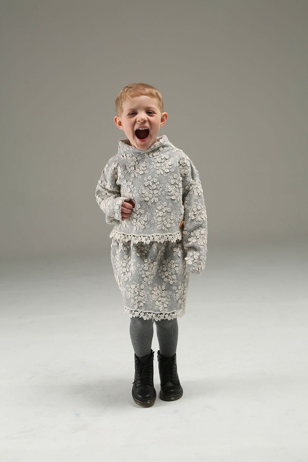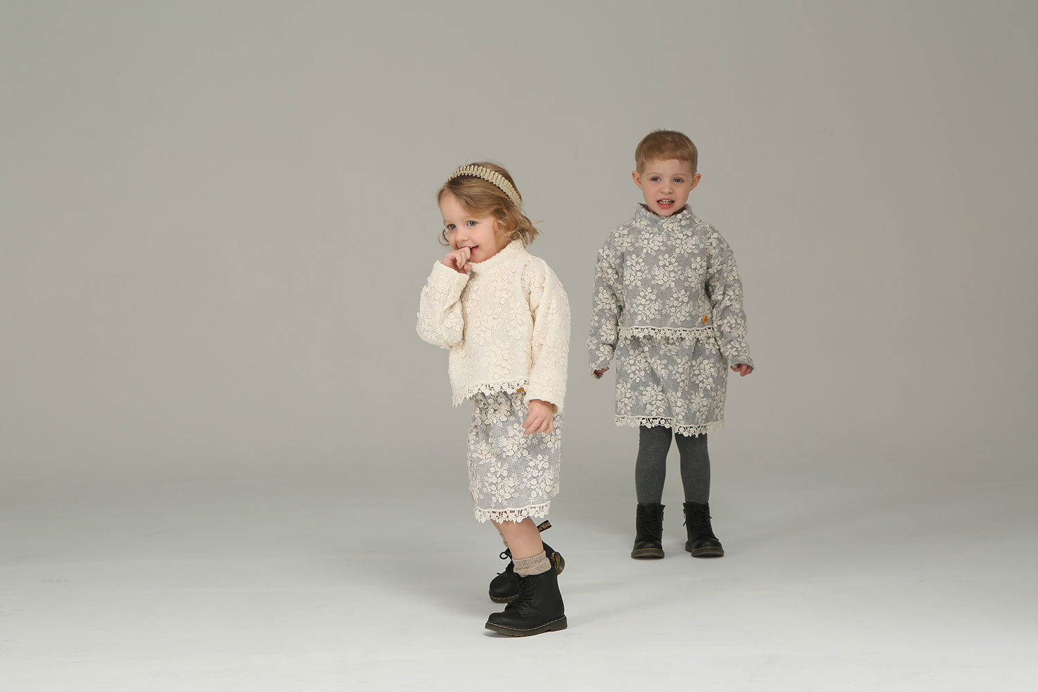 Flower lace hanging, Lace bonded sweater skirt (above the knee).