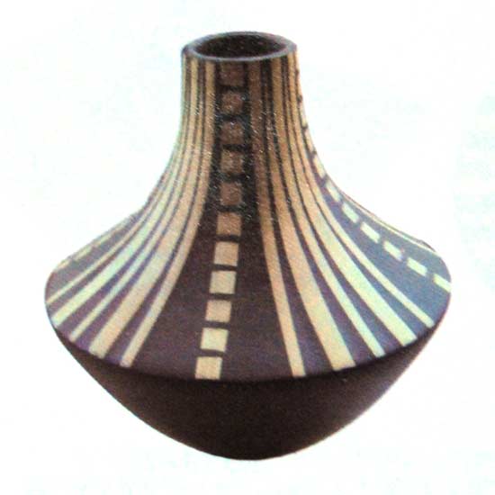 The vase is decorated with abstract patterns to give a decorative touch. It is delicately made to give a polished surface. This vase serves as an ideal household decorative item.