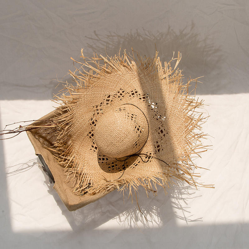 Made of 90% paper straw and 10 % polyester. Straw material. Soft comfortable and breathable to wear.