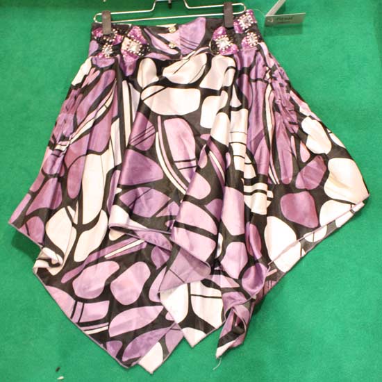 The ladies' skirt features unique tailoring with irregular cutting. The abstract prints give a modern chic style. This ladies' skirt is both chic and office-appropriate.