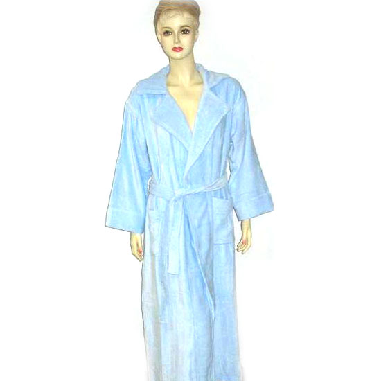 This is a long bathrobe boasting a stylish design in light blue. It features a soft texture to give you enhanced comfort. This bathrobe is an ideal choice for keeping yourself warm in the cold winter after a bath.