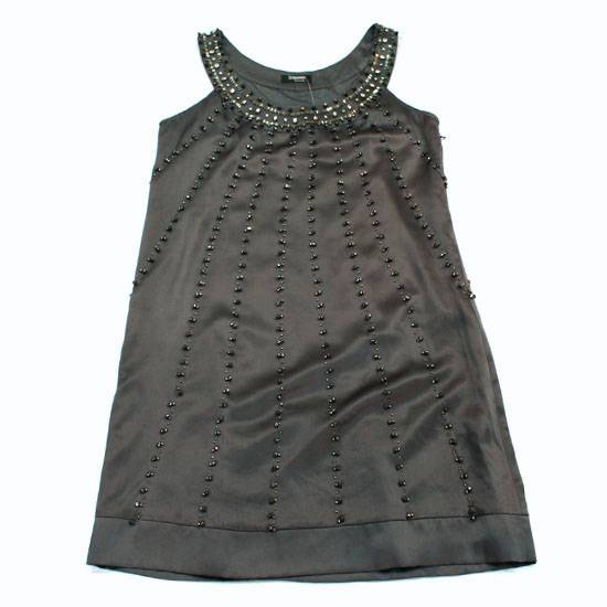This ladies' dress features a U-neck decorated by glittering beads. The bodice comes with decorative studs, bringing the dress extra glamour. Coming with an easy-to-pull back zipper, this dress makes a great fashion item for women.