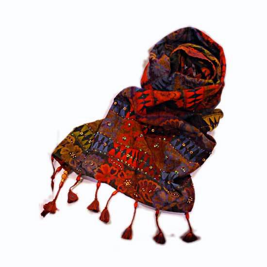 This ladies' beaded shawl features high-quality embroidery. The decorative beads add style to the shawl. The edges of the shawl are nicely embellished with fringes. This shawl adds glamour to the wearer.