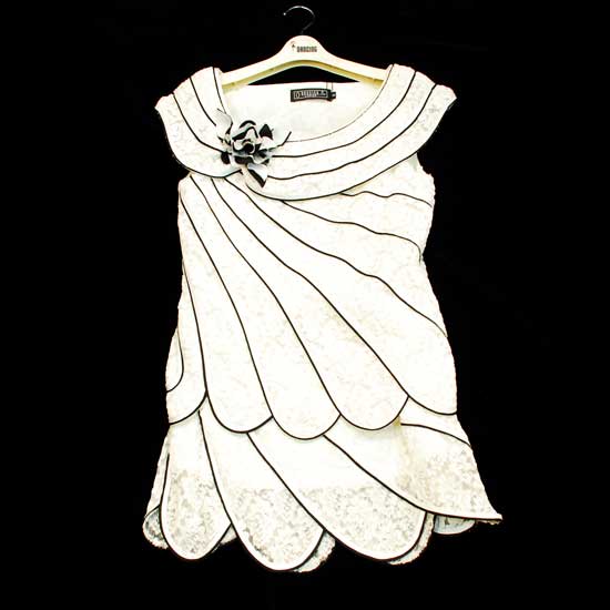 The featured sleeveless blouse boasts an elegant design. It comes with a banded neckline and a wavy bottom hem. The blouse is designed in a match of white and black for a sense of classic elegance.