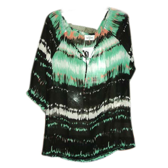 This ladies' blouse features fascinating patterns in bright colors. It is designed with a keyhole detail on the front for a feminine look. Pair it with shorts, jeans or skirts for a casual day in summer.