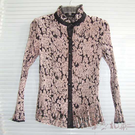 This ladies’ blouse features allover floral patterns for added elegance. Rushed collar, frilled sleeves and hem all cast fashionable style to the blouse. This chic long-sleeved blouse is ideal for autumn days.