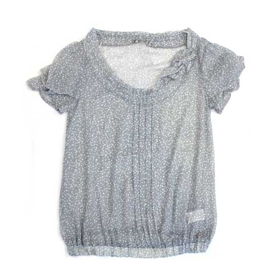 This ladies’ round-neck blouse in gray comes with allover small white dots. It features a pleated design at the front and a gathered hem. This polyester blouse pairs well with a pair of jeans to complete a casual look.