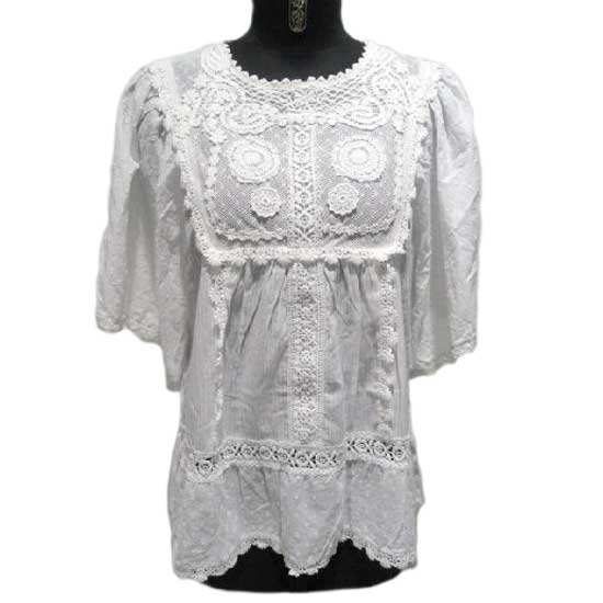 This stylish blouse with a fashionable design is designed for ladies. This half-sleeved blouse comes with an allover white hue for extra attractiveness. The lace patterns are added to present a glamorous accent.