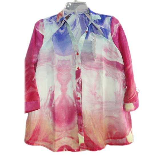 This is a ladies' blouse that is designed with a point collar, long sleeves and a button-up front. It is fully adorned with colorful prints for a sense of attractiveness. This cute blouse will surely provide you a comfortable and loose fit.