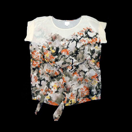 This is a sleeveless ladies' blouse made of silk. Featuring Chinese painting prints, this fashionable blouse is decorated with a waist tie for a flattering look. This lightweight blouse is ideal on summer days.