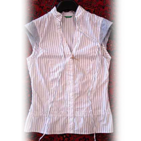 This is a ladies' blouse that comes with a sleeveless design. Featuring stripe patterns, this blouse is simplistic and fashionable. The V-neck brings feminine flair to the piece, making it a good choice for daily wear.