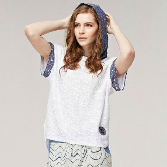 This is a ladies' blouse that is designed with a classic round neckline, a hoodie and short sleeves. It is designed with a loose-fit body for casual wear. This ladies' blouse is easy to pair with your pants.