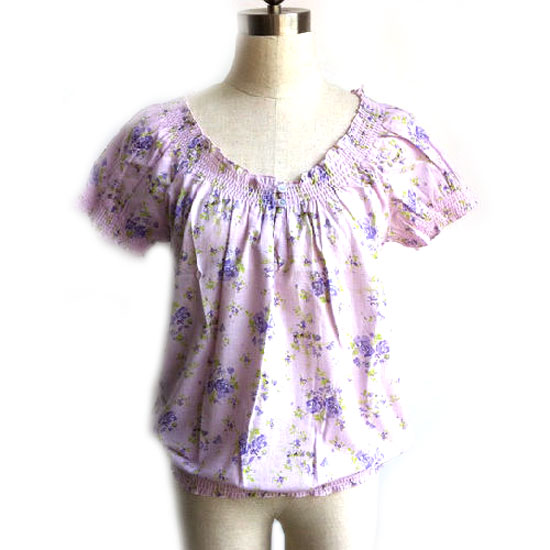 This is a ladies' blouse with a chic and stylish appearance. It comes in purple with beautiful floral patterns. The soft texture gives you enhanced comfort.