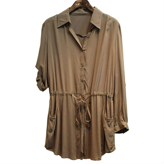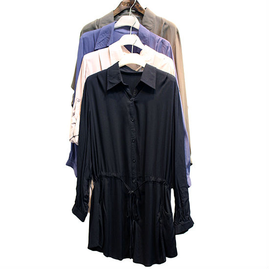 - Waist drawstring that nips the silhouette to emphasize the waistline.