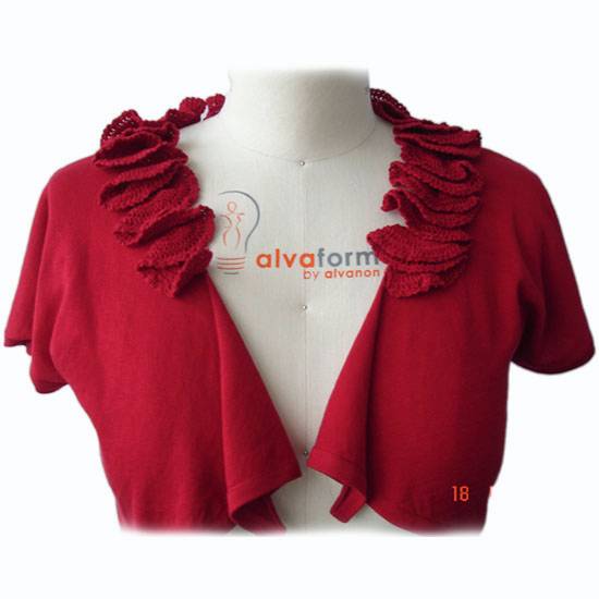 The stunning ladies' bolero boasts a cap-sleeve design for a touch of femininity. It comes with decorative ruffles along the neckline. This bolero makes a great addition to your fashion collection.