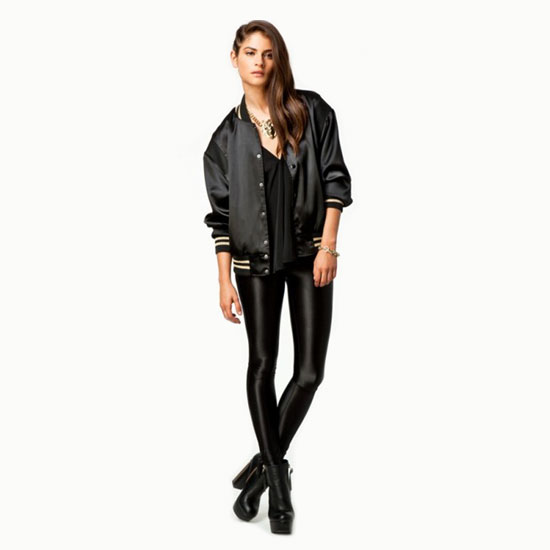 This button-down bomber jacket is playful and chic. It pairs perfectly with cropped T-shirts and glossy leggings. It goes equally well with sweatshirts and sporty pants.