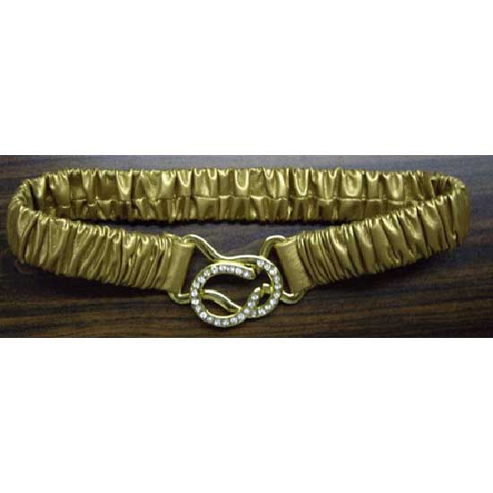 This ladies' fashion belt features a ruched construction to create a flattering texture. The gold-tone buckle is embellished with rhinestone inlays for a glamorous touch. Accent your dresses with this ruched leather belt.