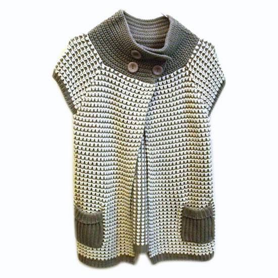 The ladies' cardigan bestows a cap-sleeve and round-neck design. It comes with two pockets and four buttons at the collar. This cardigan can be worn over other clothing.
