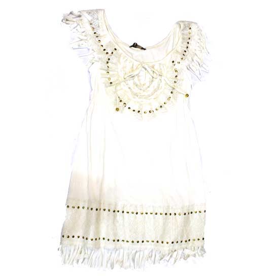 This graceful dress is characterized by its lace details on the chest, shoulders and along the bottom hem. With self-tied strings by the neckline, the dress looks more girlish. Update your look with this splendid dress.