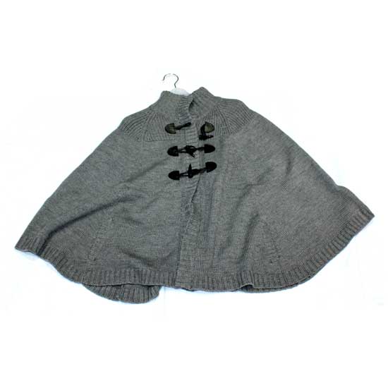 This cape sweater features a turtleneck with a swingy fit. The casual silhouette features ribbed cuffs with a front buckle closure. This ladies' cape sweater simply appeals to the discerning souls.