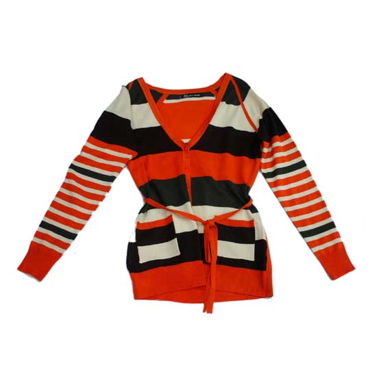 This ladies' cardigan is made mainly of viscose for a soft texture and good warmth-keeping quality. The allover patterns in contrasting tones lend a stylish touch to the design, while the self-tied strap around the waist creates a flattering curvature. This beautiful cardigan is an easy-to-match piece for casual and semi-formal occasions.