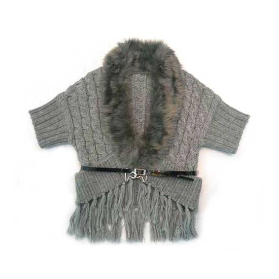 This is a fashionable cardigan that will delight you with its distinctive and unique design. It is adorned with fur decorations around the neckline, tassels at the end of the hem and a black waistband for added style. With excellent craftsmanship, this stylish cardigan is an excellent addition to ladies' wardrobe.