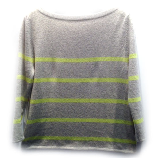 This ladies' boat neck pullover comes with lime color stripes on front, back panel and sleeves. The 3/4 sleeve length adds a unique touch to the pullover. Made of premium quality cashmere, this pullover provides excellent insulation and ultimate comfort.