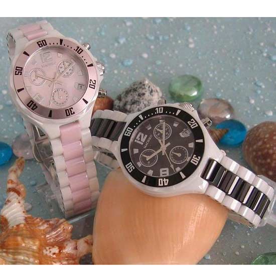 This contemporary ceramic watch is a stylish addition to your timepiece collection. It features a circular case with three subdials and a date display. This sophisticated ceramic watch comes with 3ATM water-resistant capability.
