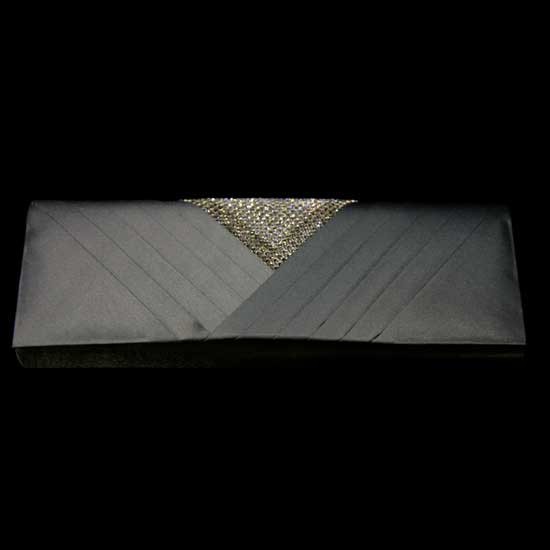 Highlighted is a gorgeous clutch bag in a slim flat shape. The design features delicate pleats, highlighted by sparkling stones. The elegant design complements a nice dress for formal occasions.