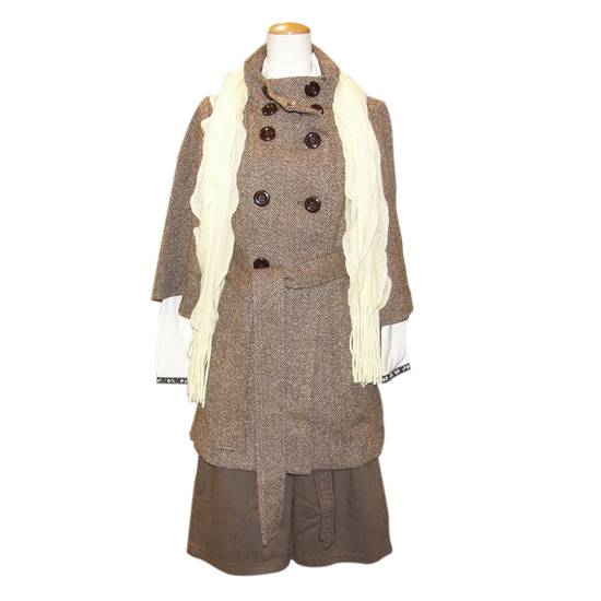 - The coat has 10 buttons in a double breasted style and a belt to emphasis the wasit line.