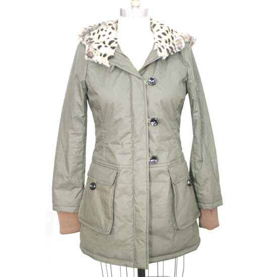 This ladies’ coat comes with a unique animal-like pattern on the collar. The extra-large pockets at the bottom allow you to store small items conveniently. This ladies’ coat is a nice choice for casual occasions.