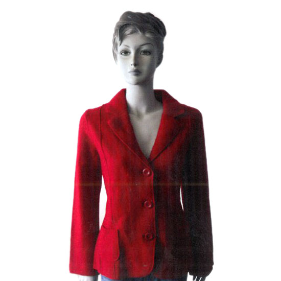 This is a ladies' coat featuring an allover red finish. The notched collar makes this coat classy and elegant. The buttons come in a matching red color.