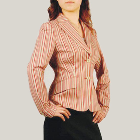 This is a ladies’ coat that is accented with allover colorful striped patterns for a decorative touch. It is made of quality material for ultimate wearing comfort. This ladies’ coat is finished with a classic collar, a button-up front and long sleeves.