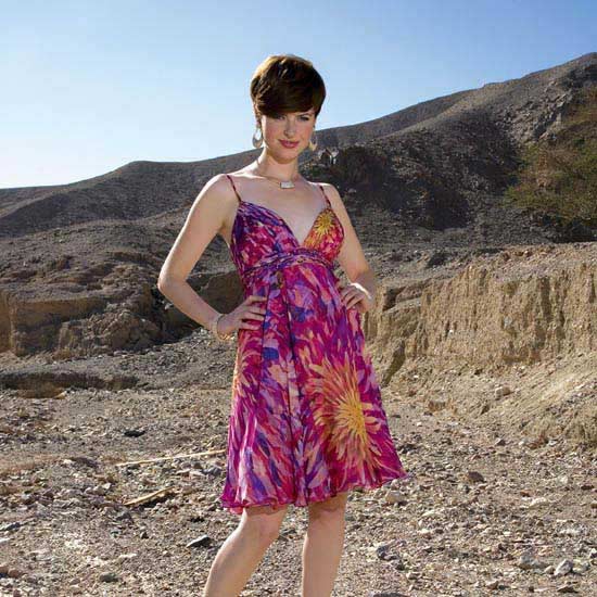 Displayed here is a ladies' cocktail dress in vibrant colors. It comes with spaghetti straps for a touch of glamor. This silk dress is a brilliant choice for your cocktail parties.