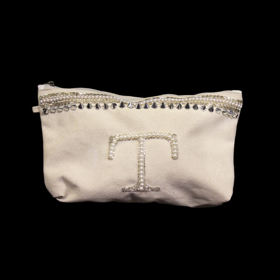 This ladies’ cosmetic bag comes with a stylish and elegant design. It is made of 100% cotton for a comfortable touch. This cotton cosmetic bag is designed with beads and studs for an eye-catching look.