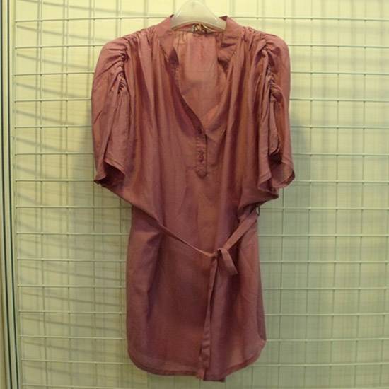 Featured is a classy plain blouse in hip-length design. It comes with a stand collar and puff sleeves. It is well tailored with fine details and embellished with a delicate belt. Add charm to your wardrobe with this elegant piece.
