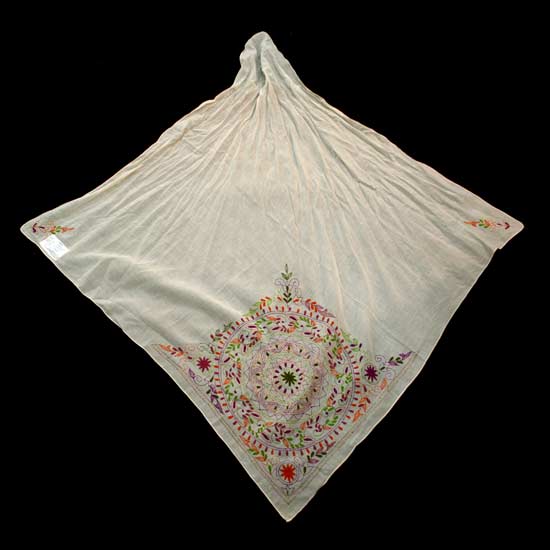 The finely tailored square-shaped ladies' scarf makes an easy-to-match fashion accessory for your all-season garments. The quality cotton fabric ensures a blissfully comfortable fit all day long. The hand-embroidered floral pattern adds a distinctive and exotic touch to the whole piece. Class up your all-season wardrobe with this ladies' scarf.