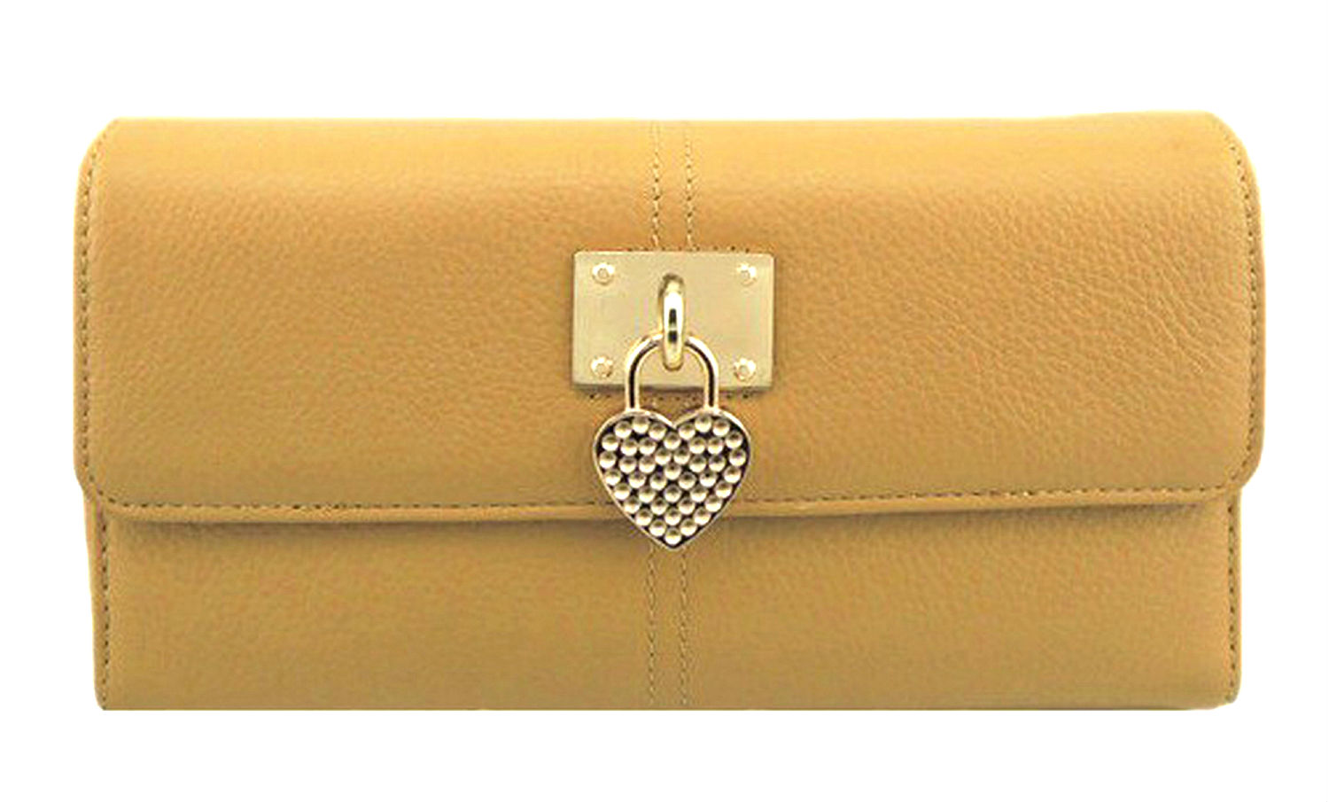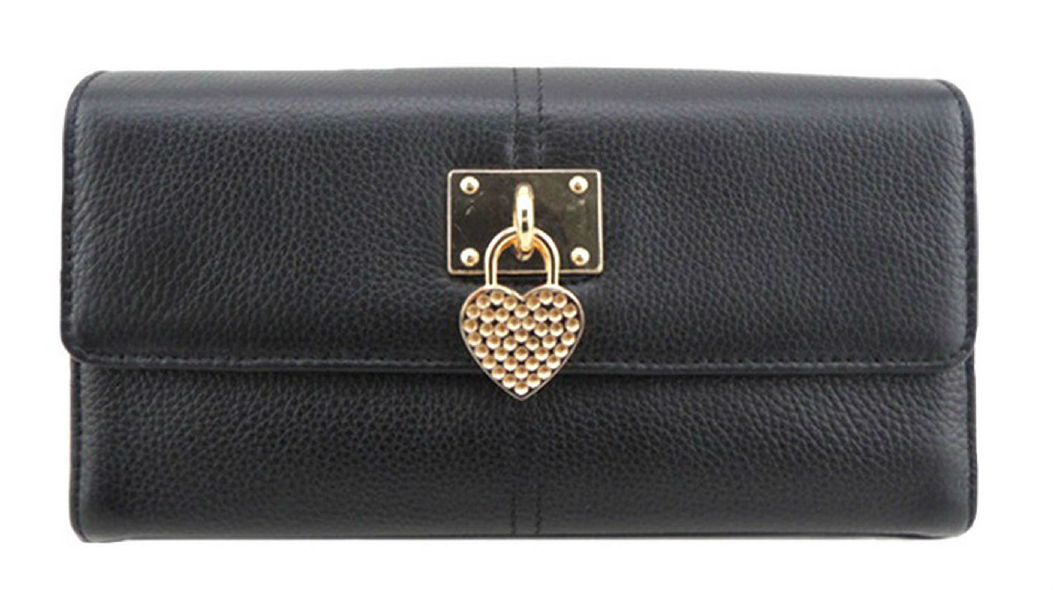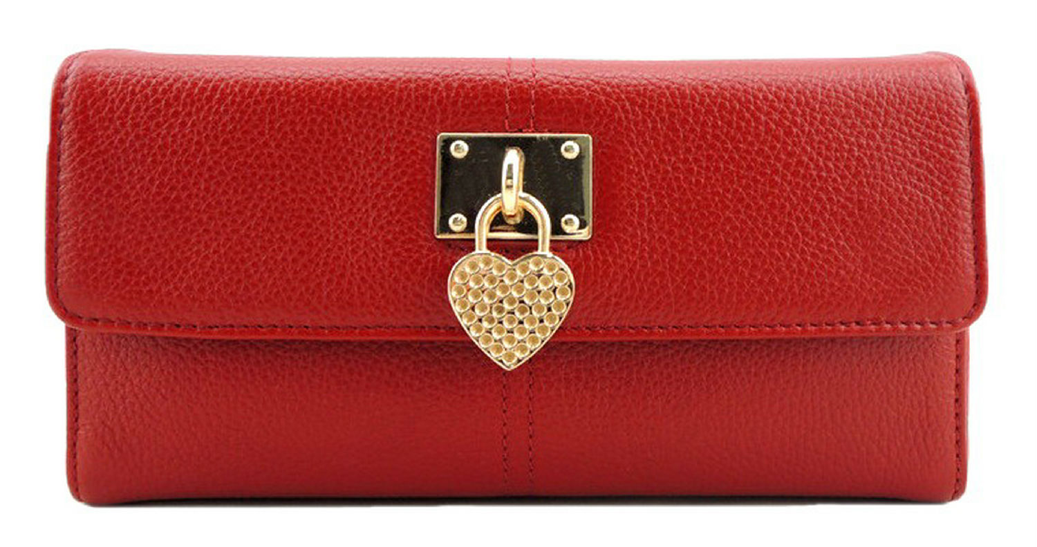 Ladies' cow leather clutch bag with heart-shaped metal decorate.