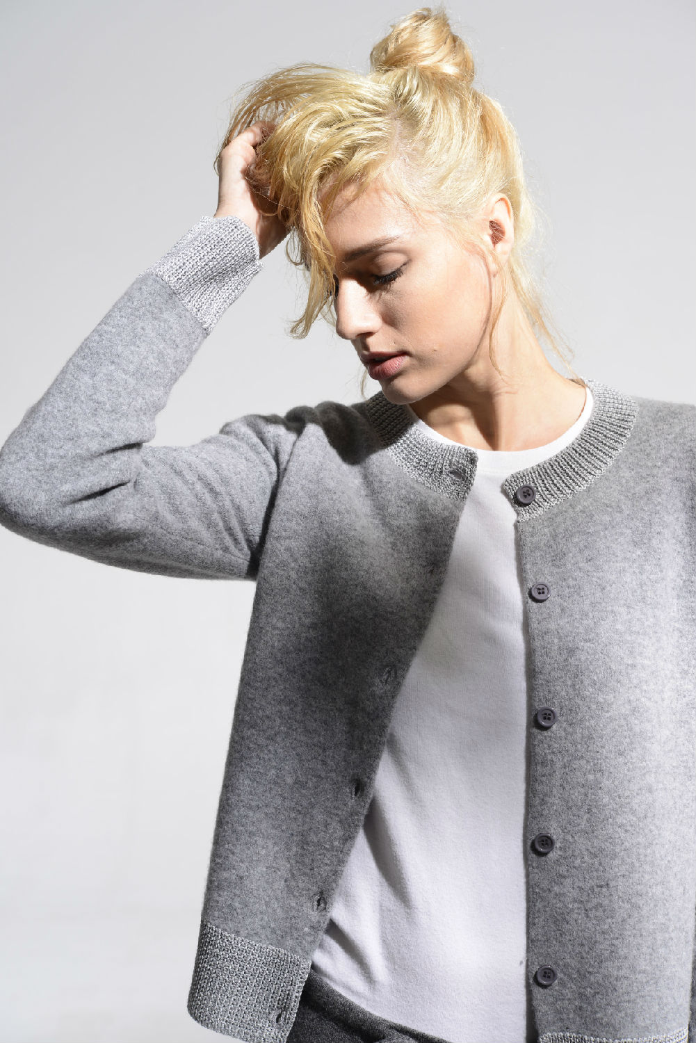 Ladies' Crew Neck Long Sleeve Knitted Cardigan