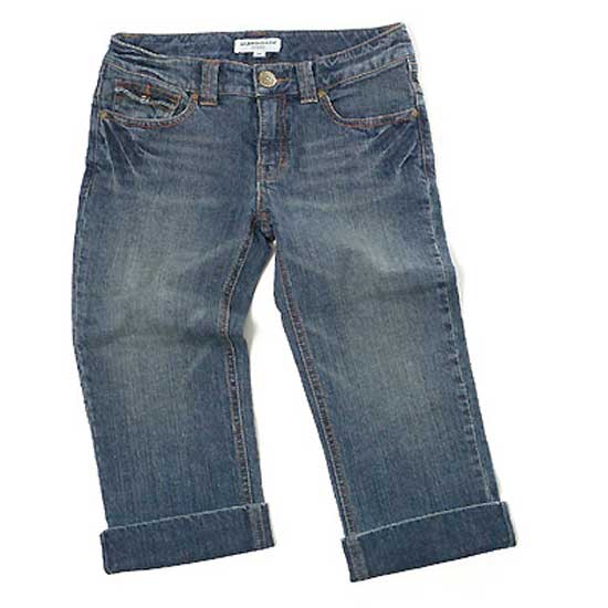 The presented pair of ladies' denim jeans features a roll-up bottom to add sophistication. The surface is hand-scrape washed to present a classic vintage look. This pair of tight-fit jeans makes it perfect to match casual ladies' wear.