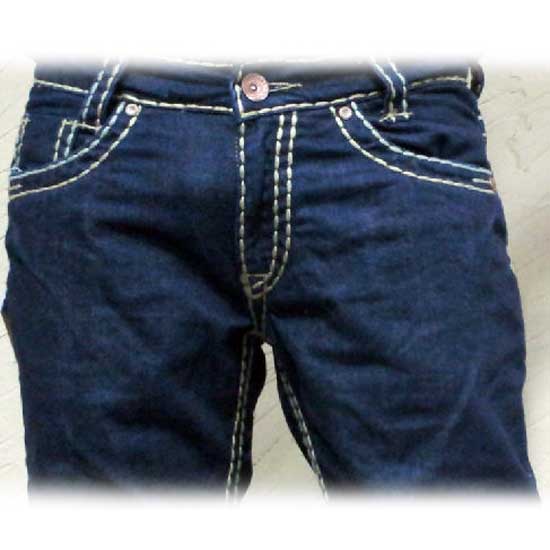 This pair of ladies' denim jeans features color-contrasting stitching for a striking effect. These denim jeans are designed with belt loops at the waist and a zipper fly with a button closure. With a flattering straight cut, this pair of jeans is ideal for mixing and matching your stylish top wear for a casual look.