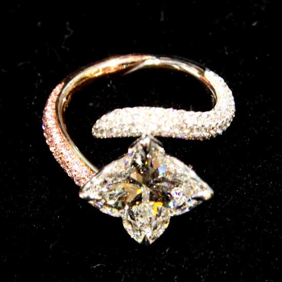 This gorgeous ring features a dazzling silver construction. It boasts a swirled design with an orchid-cut diamond for a hint of elegance. Add this eye-catching ring to your jewelry collection.
