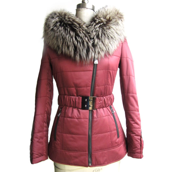 This is a ladies’ down coat that comes with a fashionable and stylish look. The well-made fur collar adds a touch of elegance to the whole piece. This ladies’ coat is finished with a zippered front, long sleeves and a slim-fit body.