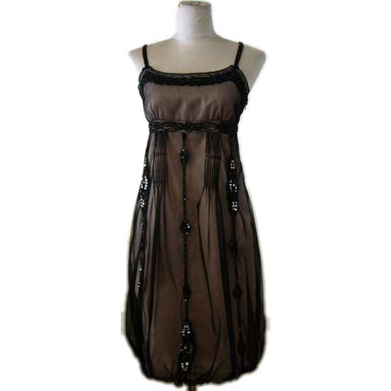 The design of this evening dress exudes a sense of sophistication. The dress comes with spaghetti straps with lace trim. Shiny beads are added on the organza layer for style.