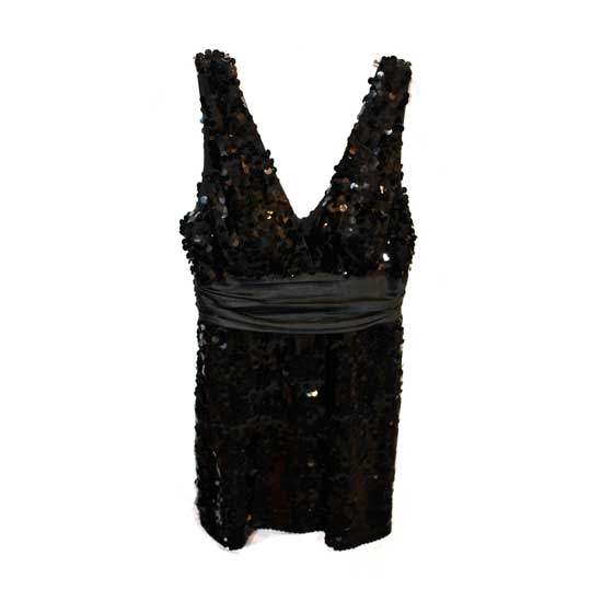 This outlined ladies' dress comes with a sequin bodice for added elegance. It has a silky belt to boost an attractive figure. The featured ladies' dress is a fashionable piece to wear in dancing parties.