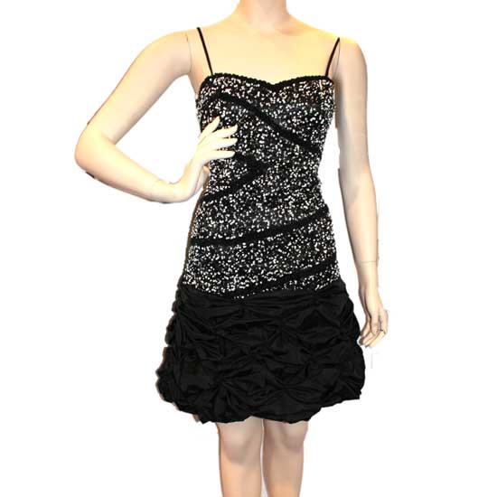 This ladies’ dress is adorned with shimmering sequins for an impressive style. The slanted stripes showcase extra uniqueness. The black bottom adds an elegant touch to the dress.