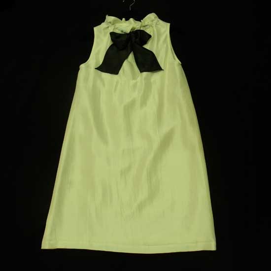 Pictured is a dress colored in a refreshing lime yellow. The dress is available in a baby-doll design with a huge ribbon at the front. The dress helps display your playful and lovely side.