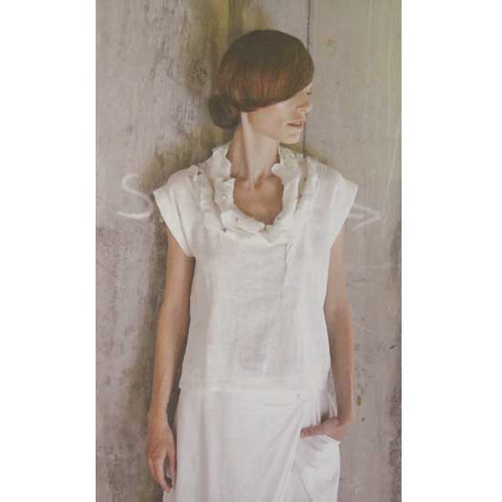 Available is a ladies' dress which is made of linen. This piece features an appealing ruffled neckline. The soft and lightweight construction also makes it comfortable to wear.