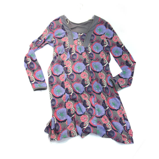 The ladies' dress is made with cotton-blend construction with extreme comfort. Featuring a buttoned-up front and long sleeves, this stylish dress comes with lotus print in vibrant colors. It is surely an ideal addition to any wardrobe.