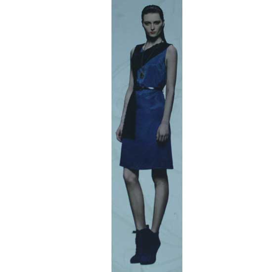 This smooth, glossy ladies' dress is accented with black fur trimming. The slim waist belt adds a simple yet elegant touch to the piece. Fully lined, the sleeveless dress is finished with a zipper closure on the back.